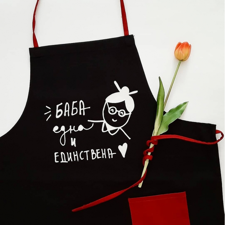 Црна престилка со дизајн: