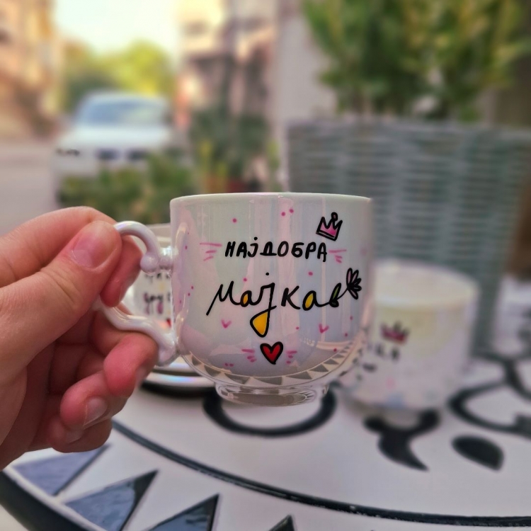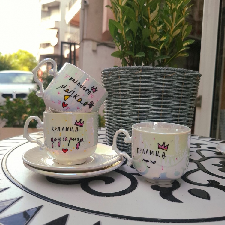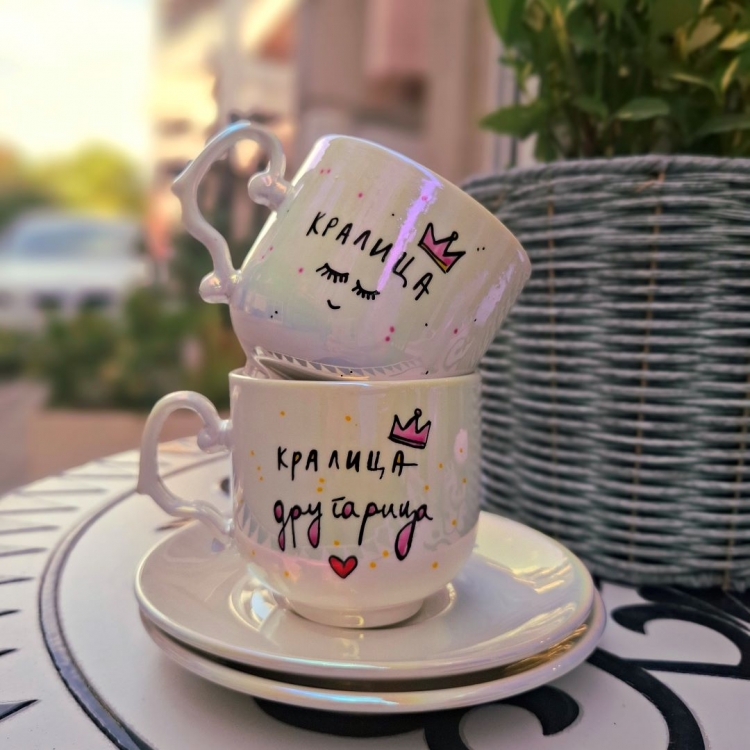 Уникатна бисерна шолја со тацна и натпис по избор