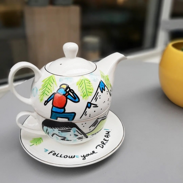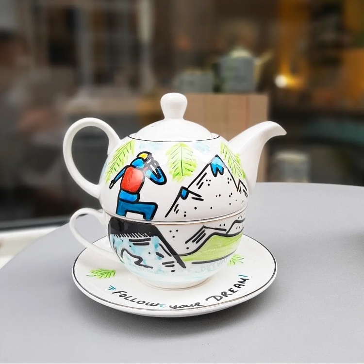 Дводелен порцелански чајник за љубители на планината со дизајн