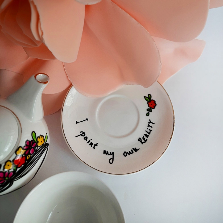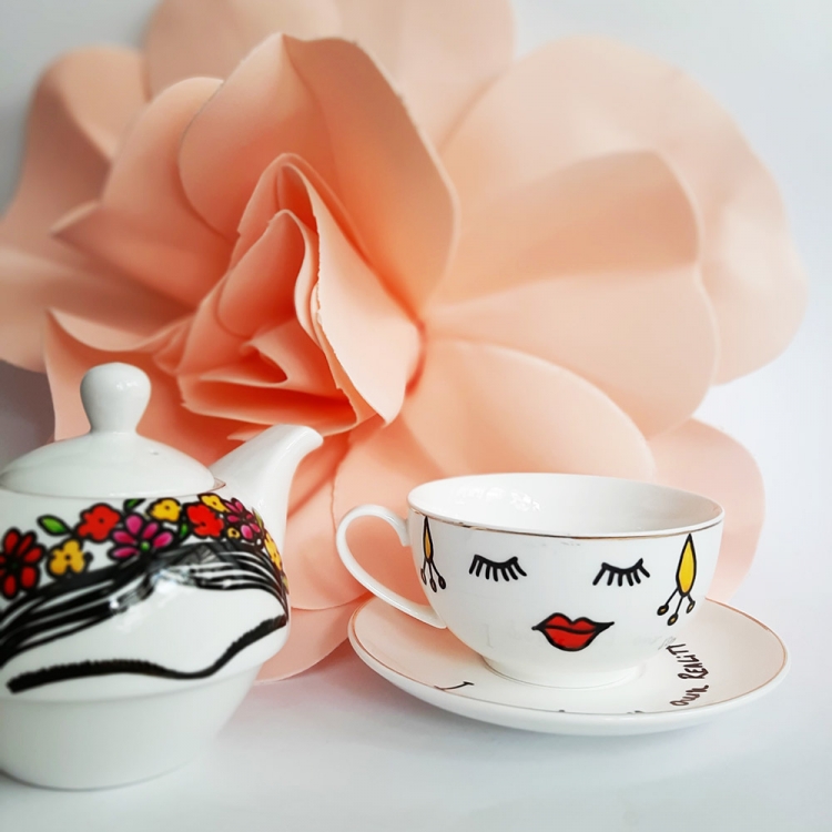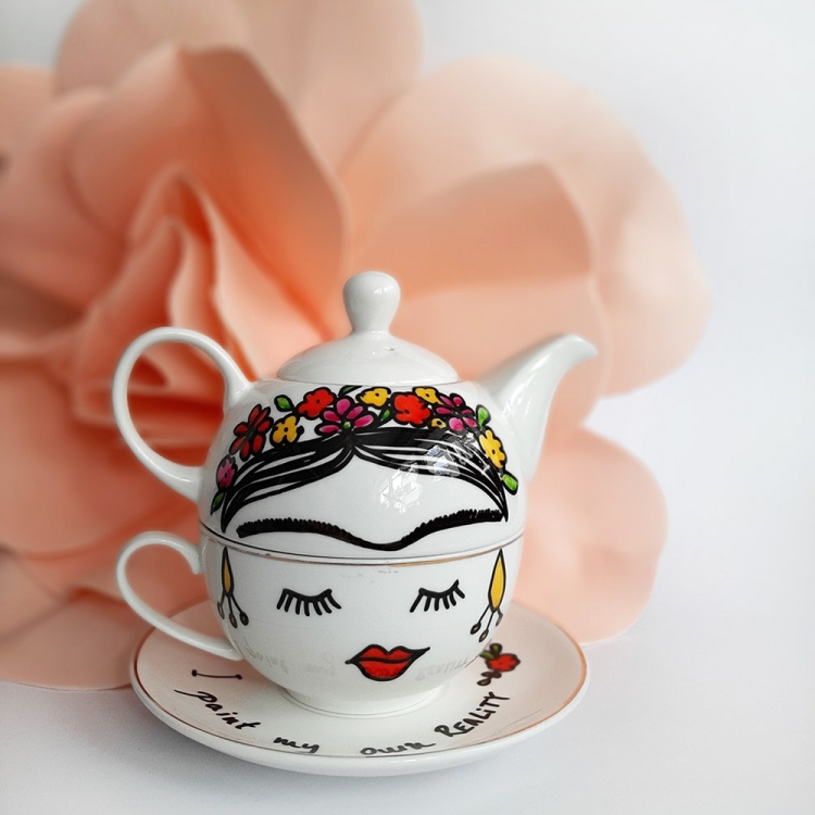 Дводелен порцелански чајник со дизајн: