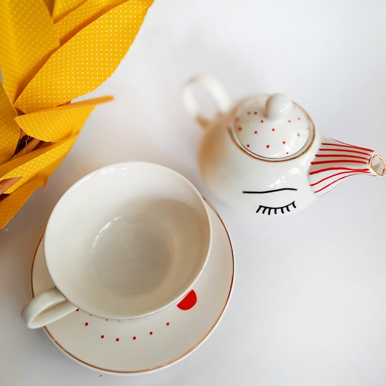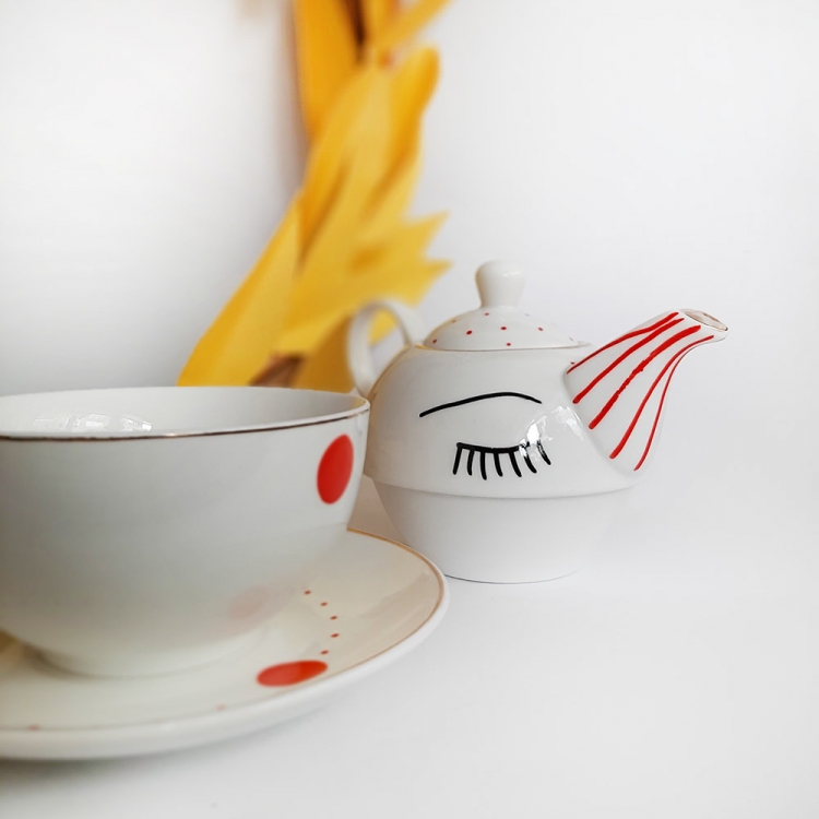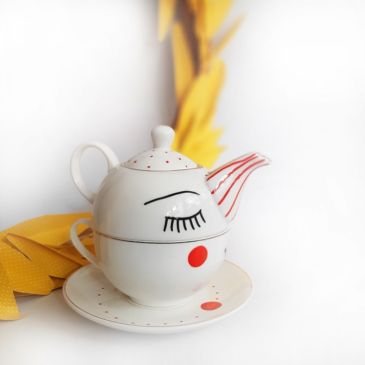 Дводелен порцелански чајник со дизајн: