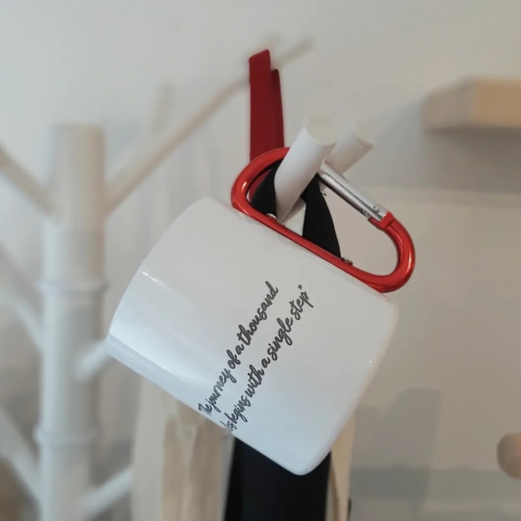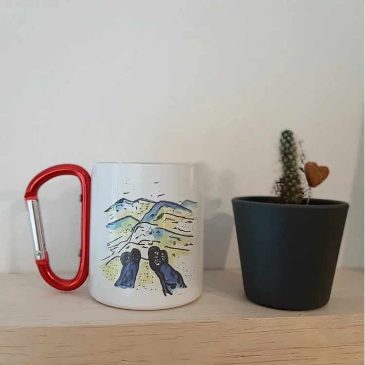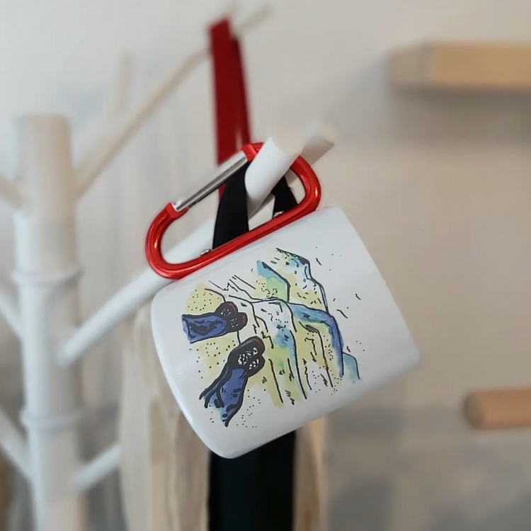 Hike метална шолја со рачка која што може да се закачува (боја по избор црна или црвена  рачка) со дизајн "The journey"