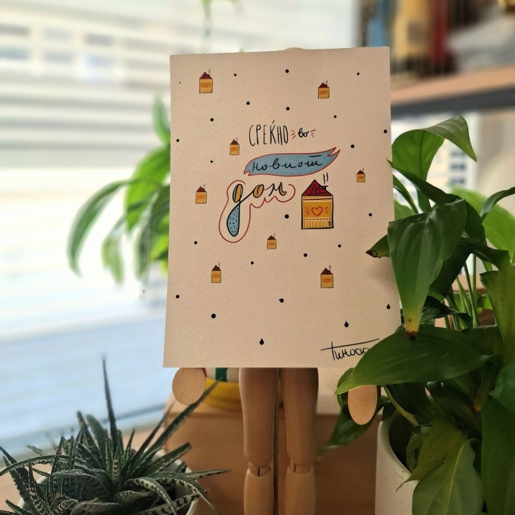 Картичка „Среќно во новиот дом“ за да посакате среќо вселување на вашиете најблиски. За ткаење на убави приказни на новата дестинација <3 :)