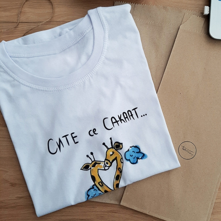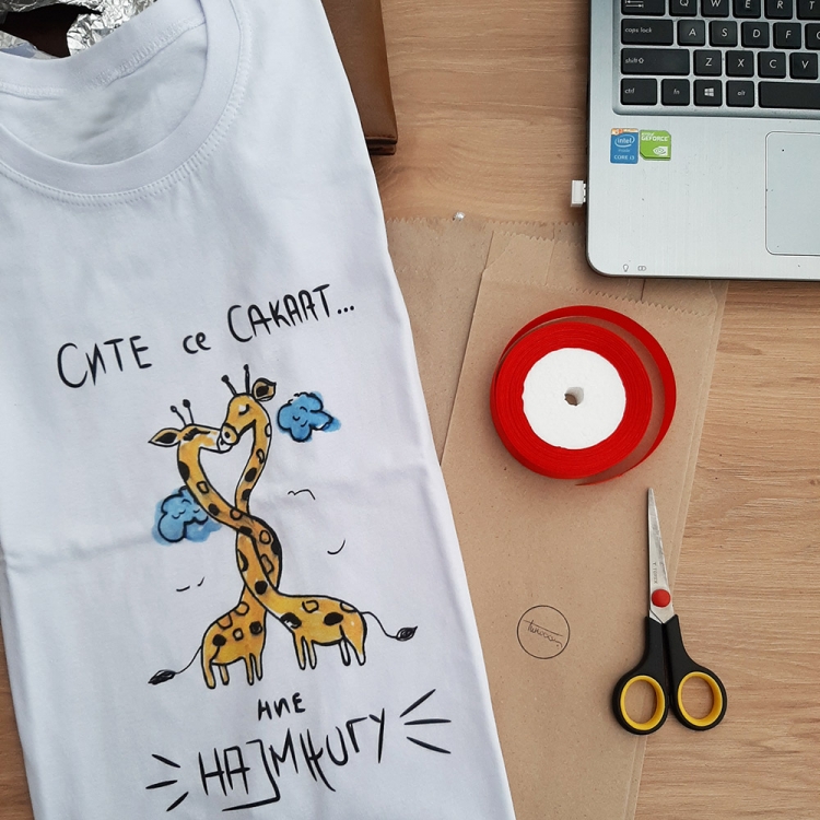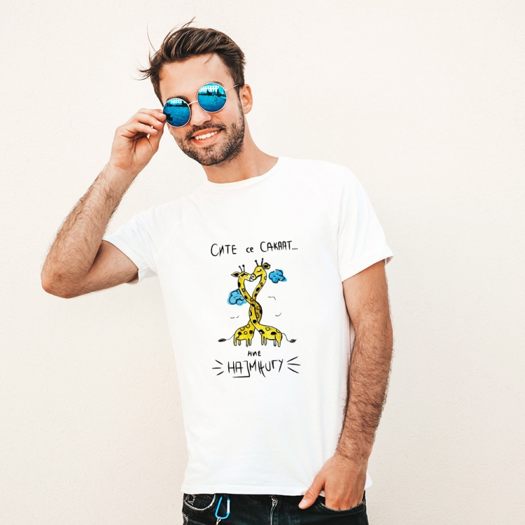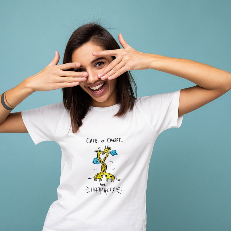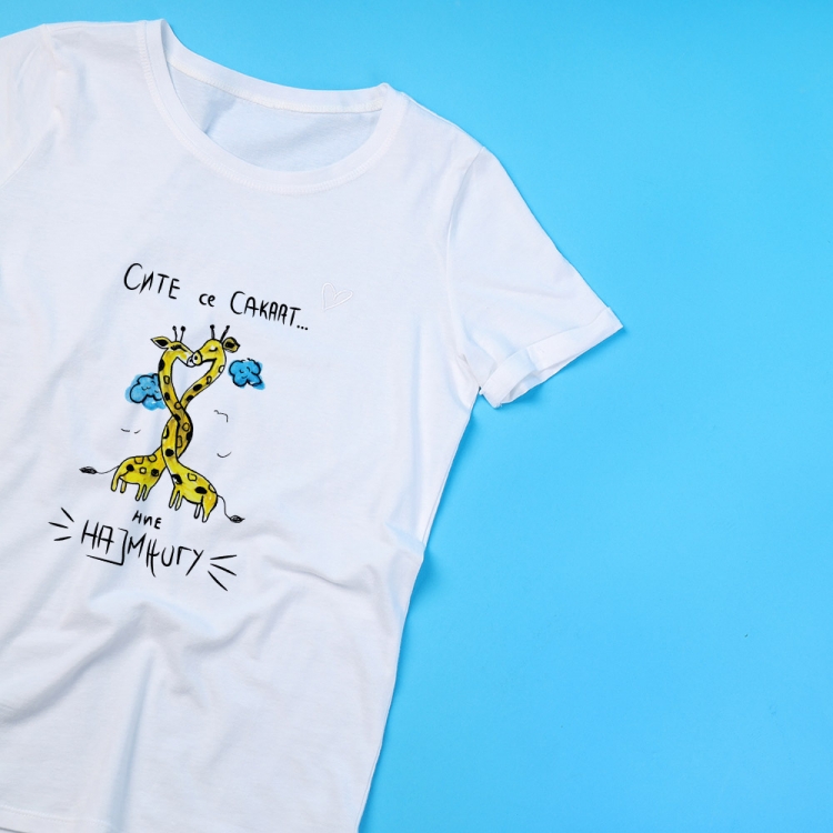 Mаичка со дизајн "Сите се сакаат, ние најмногу" - жирафи