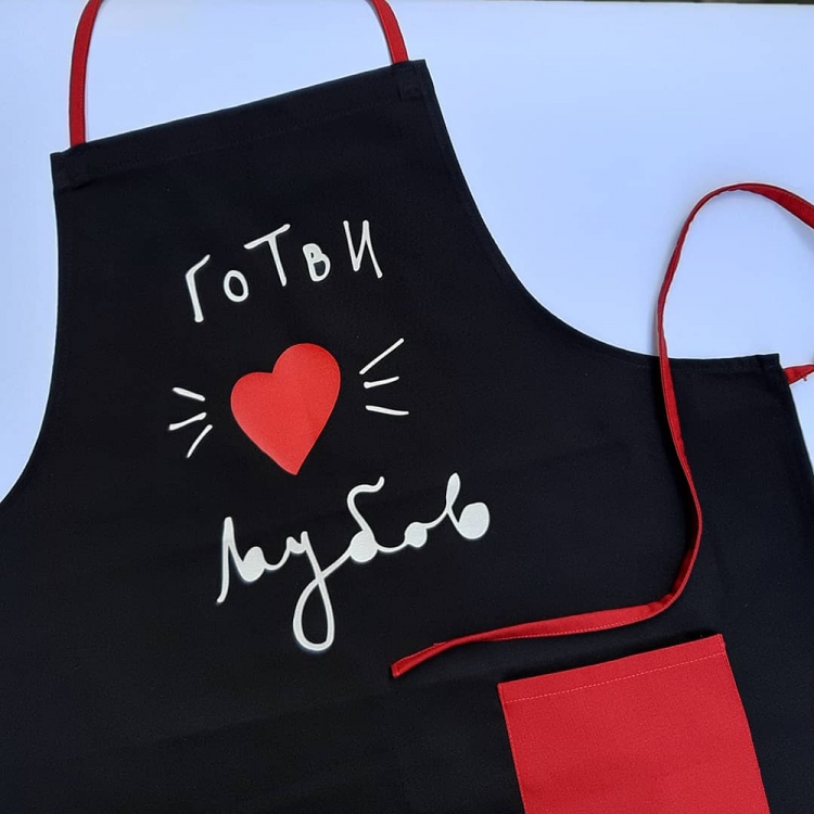 Црна престилка со дизајн: