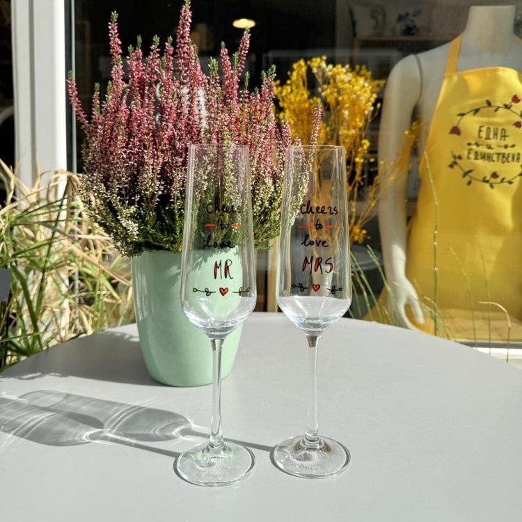 Пар чаши за пенливо вино со дизајн
