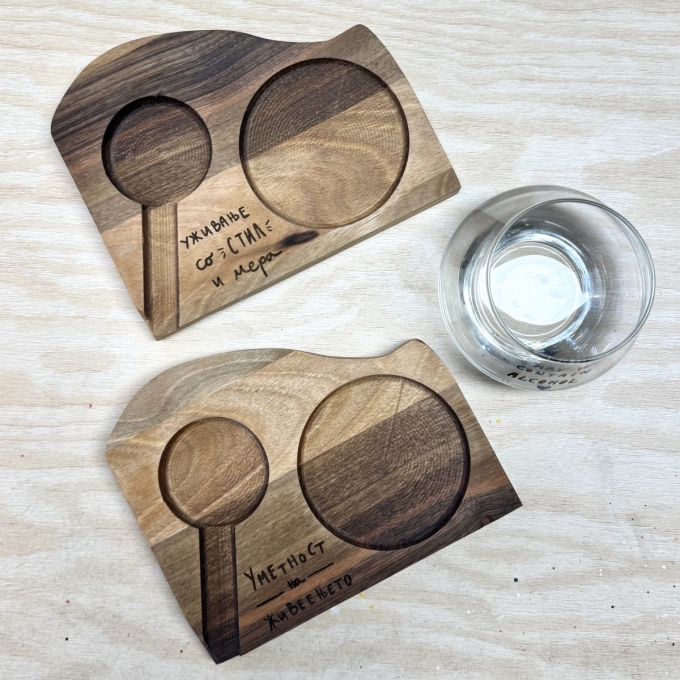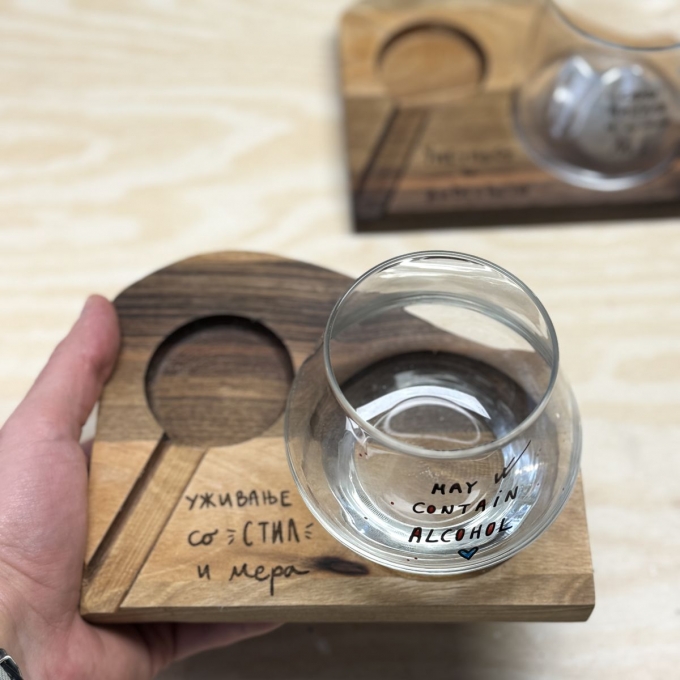 Сет даска за виски и чаша со дизајн по избор
