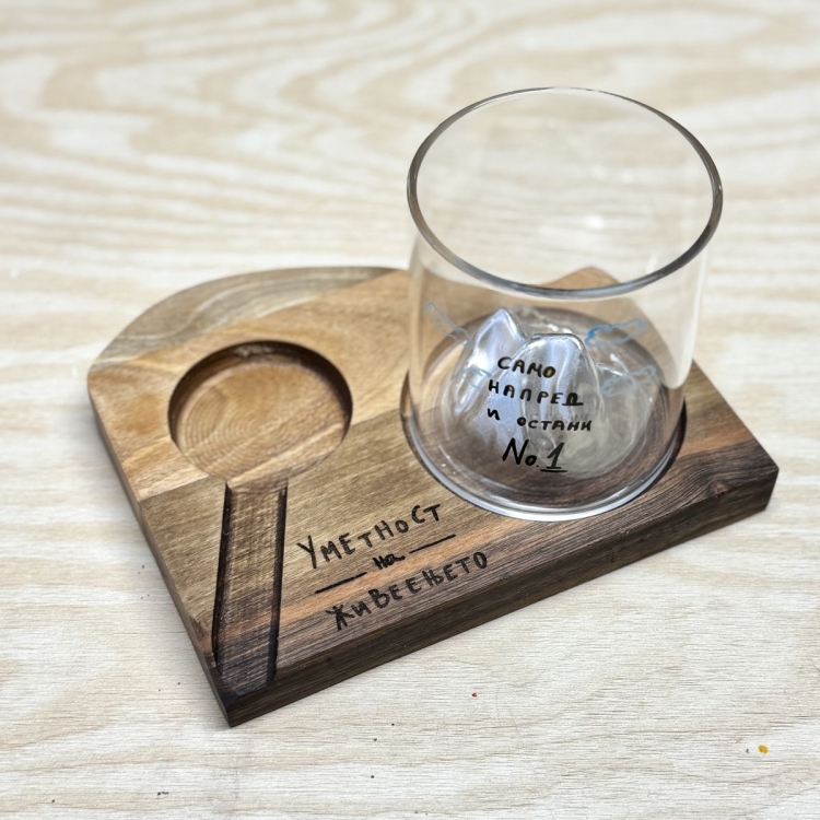 Сет даска за виски и чаша со дизајн по избор