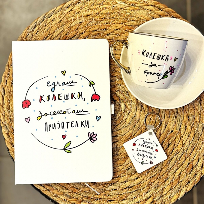 Сет Еднаш колешки засекогаш пријателки - нотес + шолја + привезок