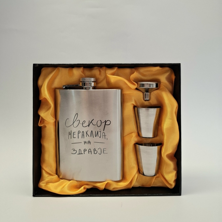 Сет плоска со гравиран дизајн СВЕКОР МЕРАКЛИЈА на здравје!