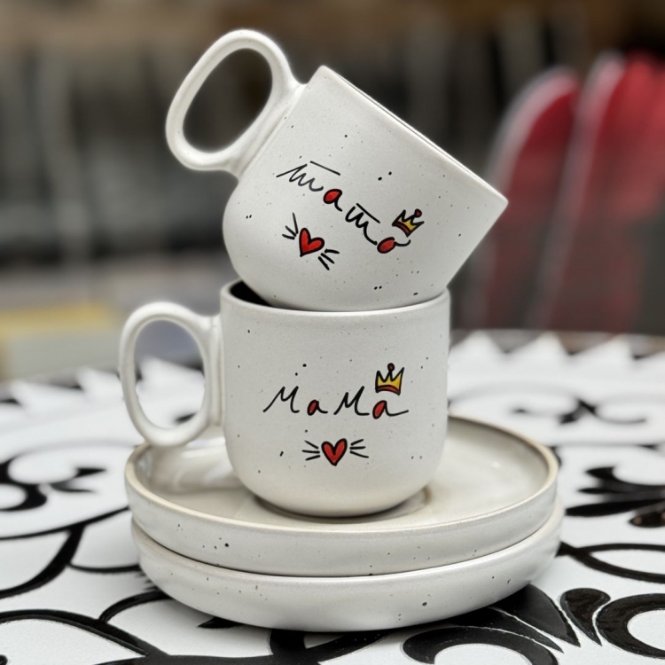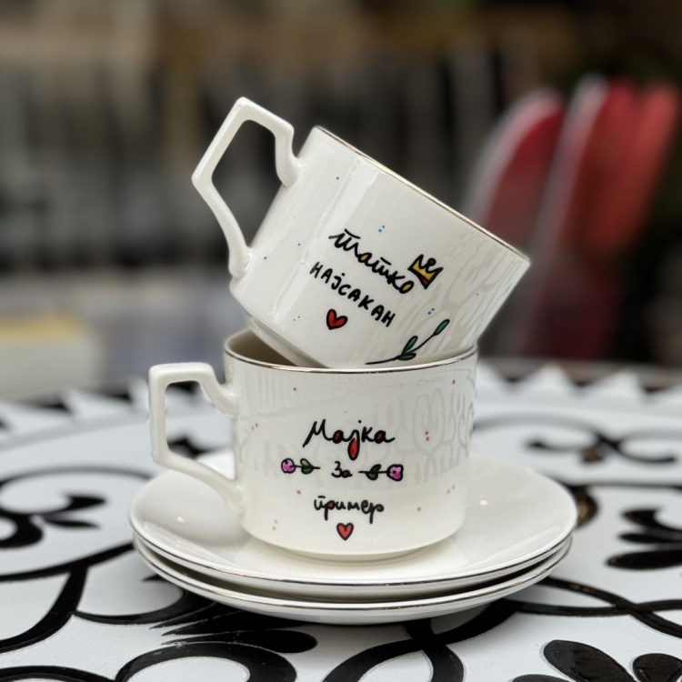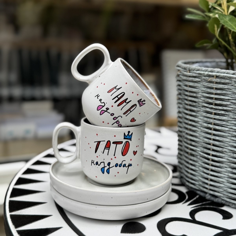 Сет од 2 шолји + тацни со дизајн „Мама најдобра“ и „Тато најдобар“