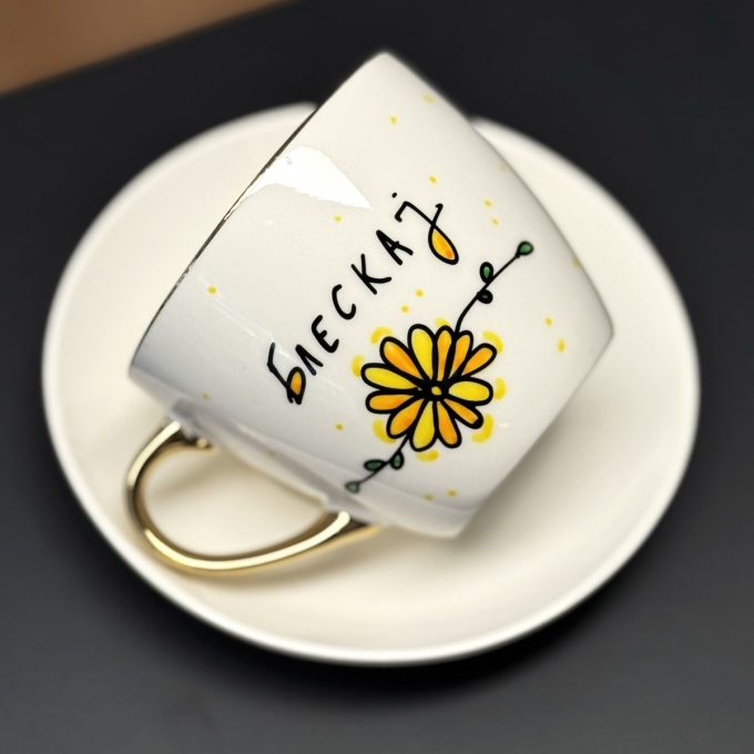 Уживајте во кафето на посебен начин! Елегантна шолја за кафе со рачно цртан цветен дизајн
