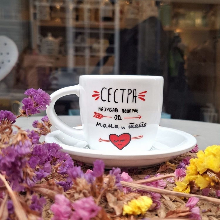 Шолја со тацна „Сестра - најубав подарок од мама и тато“