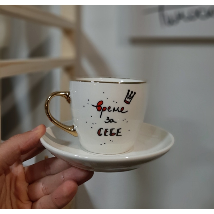 Уживајте во кафето на посебен начин! Елегантна шолја за кафе со рачно цртан дизајн