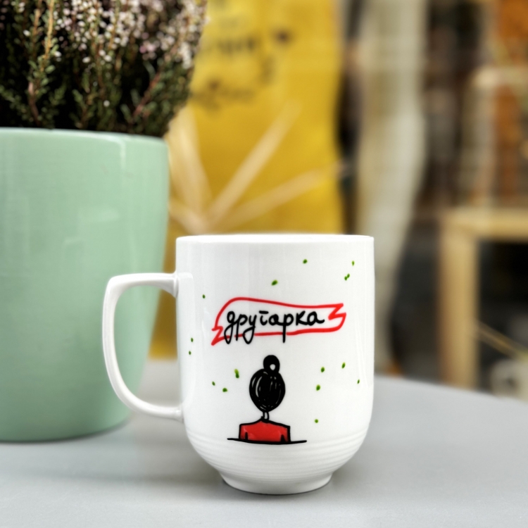 Порцеланска шолја со кириличен натпис за другарка