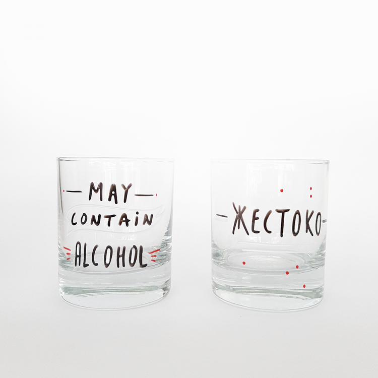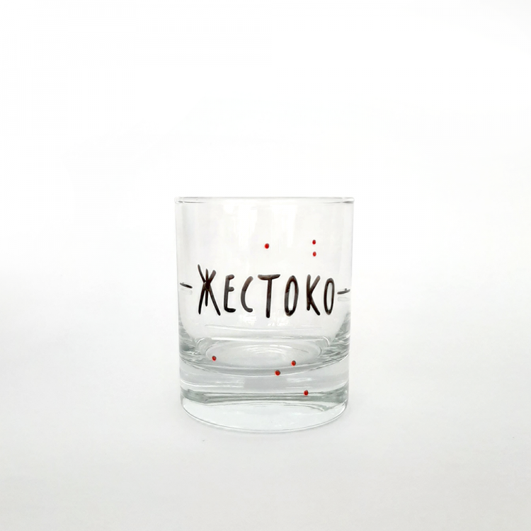 Стаклена чаша за жесток пијалок со дизајн "Жестоко"