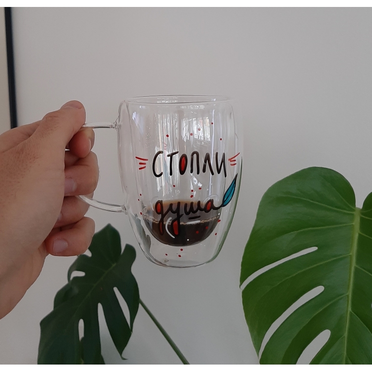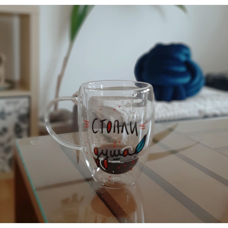 Стаклена шолја со дупло дно со дизајн:
