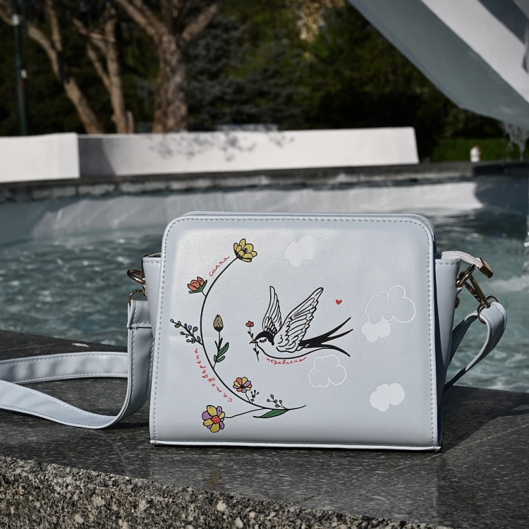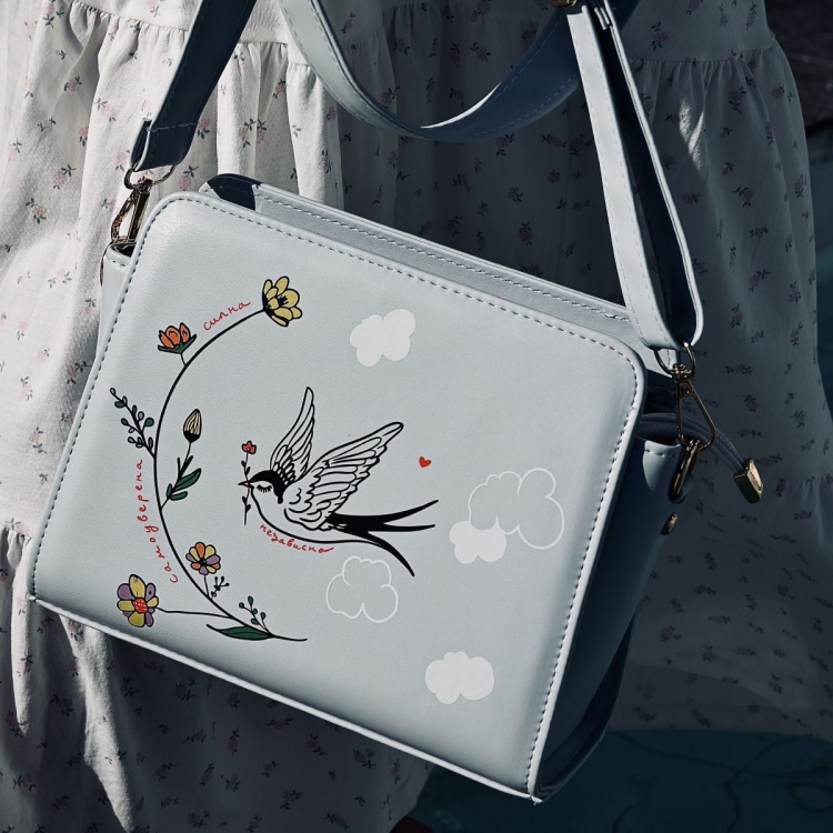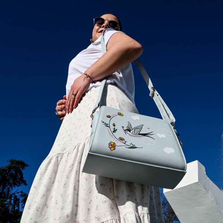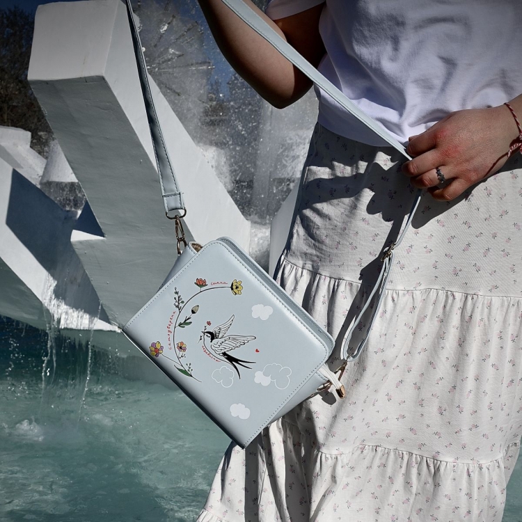Птицата е симбол на слобода, па затоа со нашата нова креација во пастелно сина боја креиравме моден додаток со нежна и силна порака. ,,Силна. Независна. Самоуверена.'' - зборови кои означуваат став, автентичност и храброст.